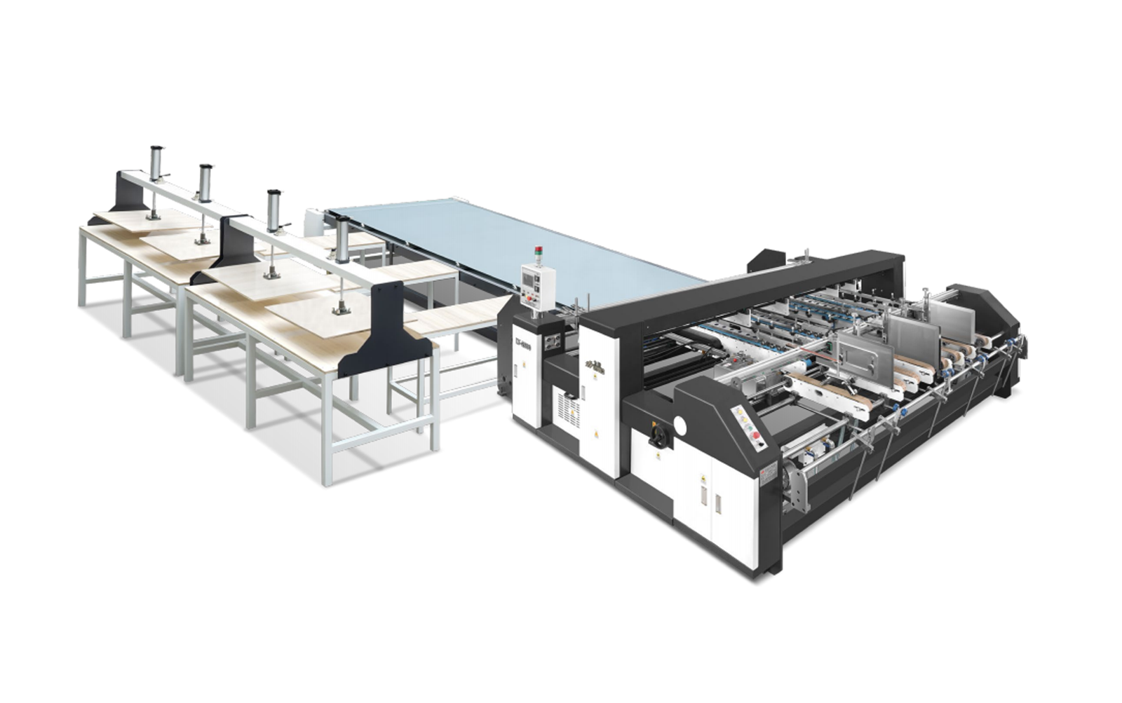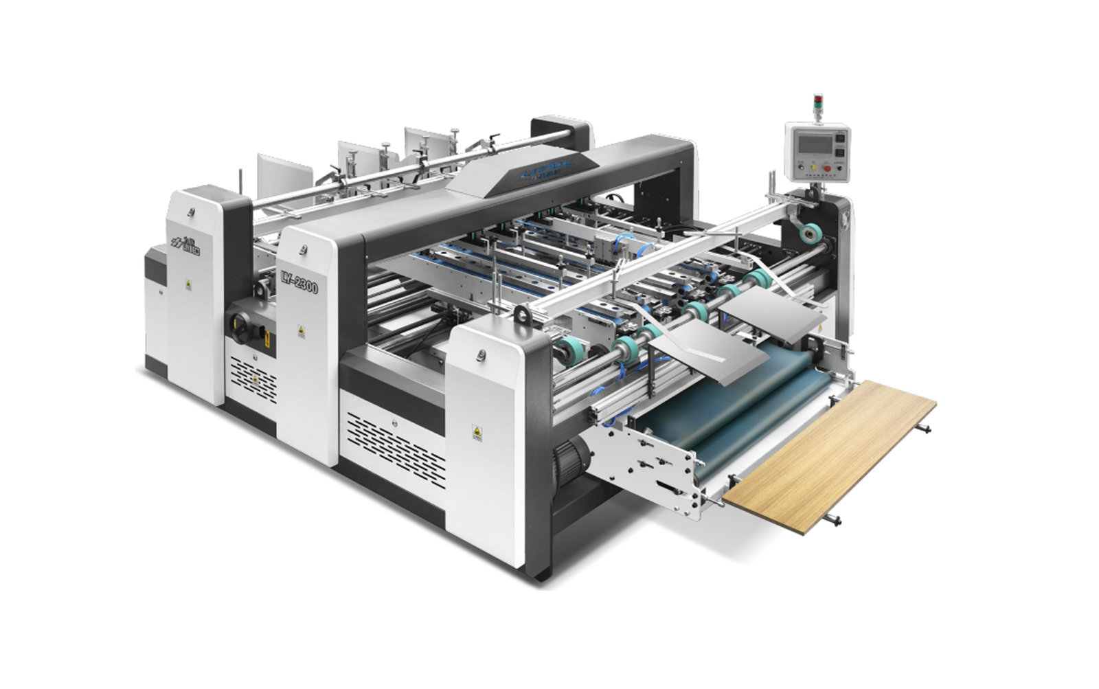 LY2300 is an efficient cardboard feeding equipment with features including 60mm wide rubber feeding belt, dual independent servo motor drive, adjustable cardboard stacking position and four height-adjustable feeding knives. It adopts a down-suction structure and a down-suction vortex water suction pump to improve paper feeding stability and frequency uniformity without the need to replace the product.
